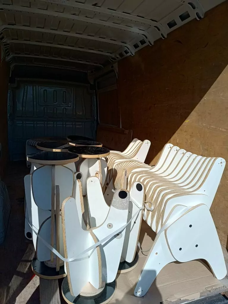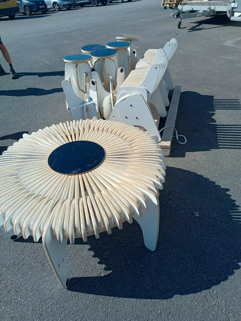 Première mission : remettre en état nos bancs et tables en bois passés par une intense saison de festivals.