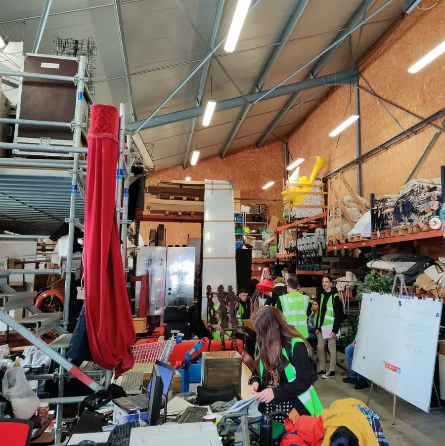Dernière mission confiée aux étudiant.es : le démontage de décors usagés, déjà largement utilisés en location, mais devenus irréparables.