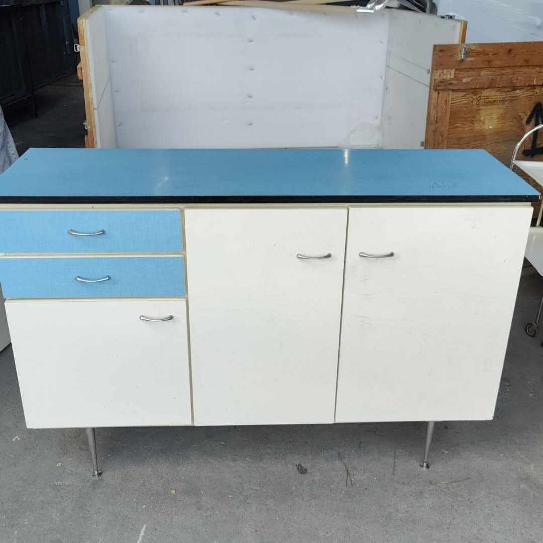 Esthétique typique des cuisines et intérieurs des années 50 à 70, avec lignes sobres et finitions contrastées.