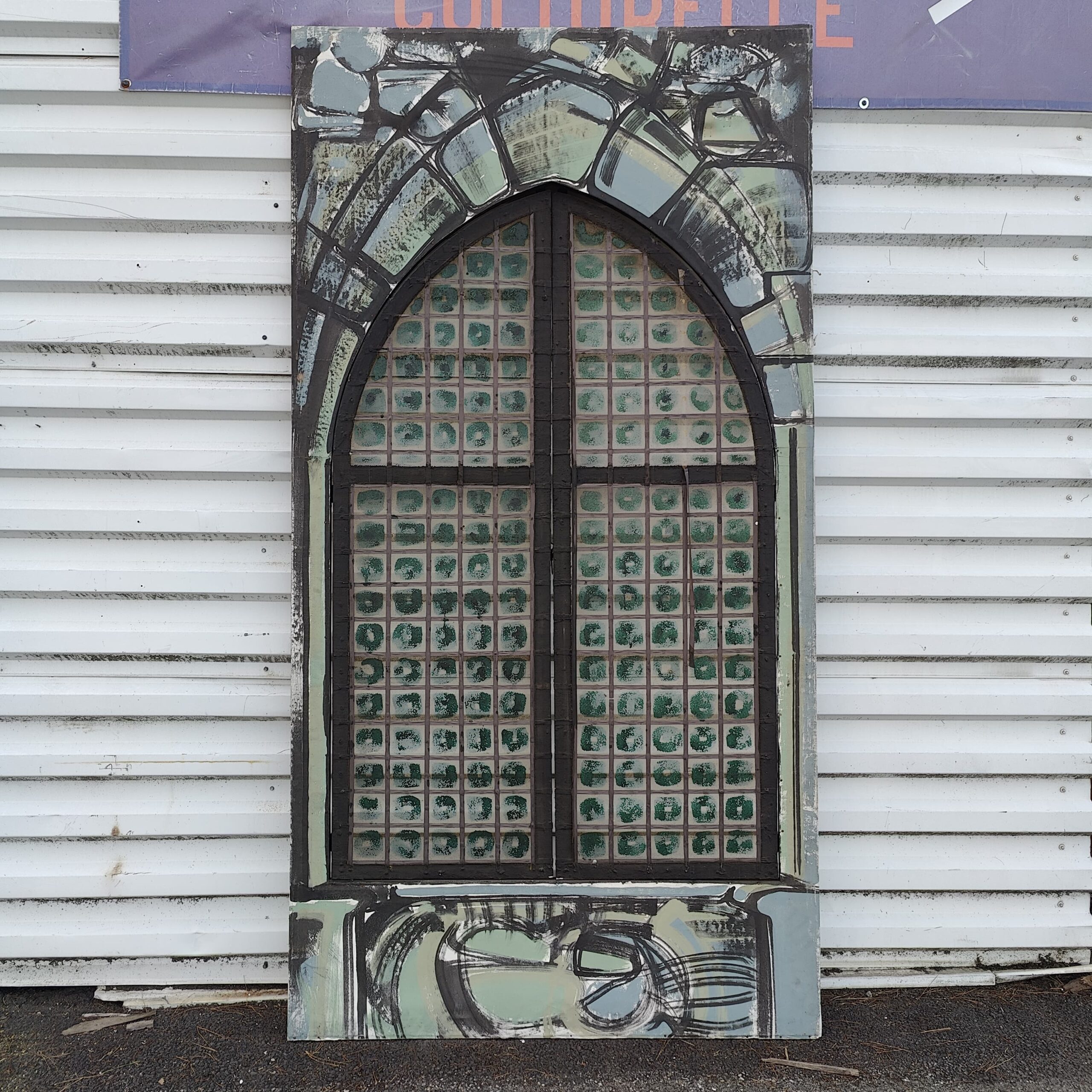Décor représentant une grande fenêtre gothique / vitrail stylisé.