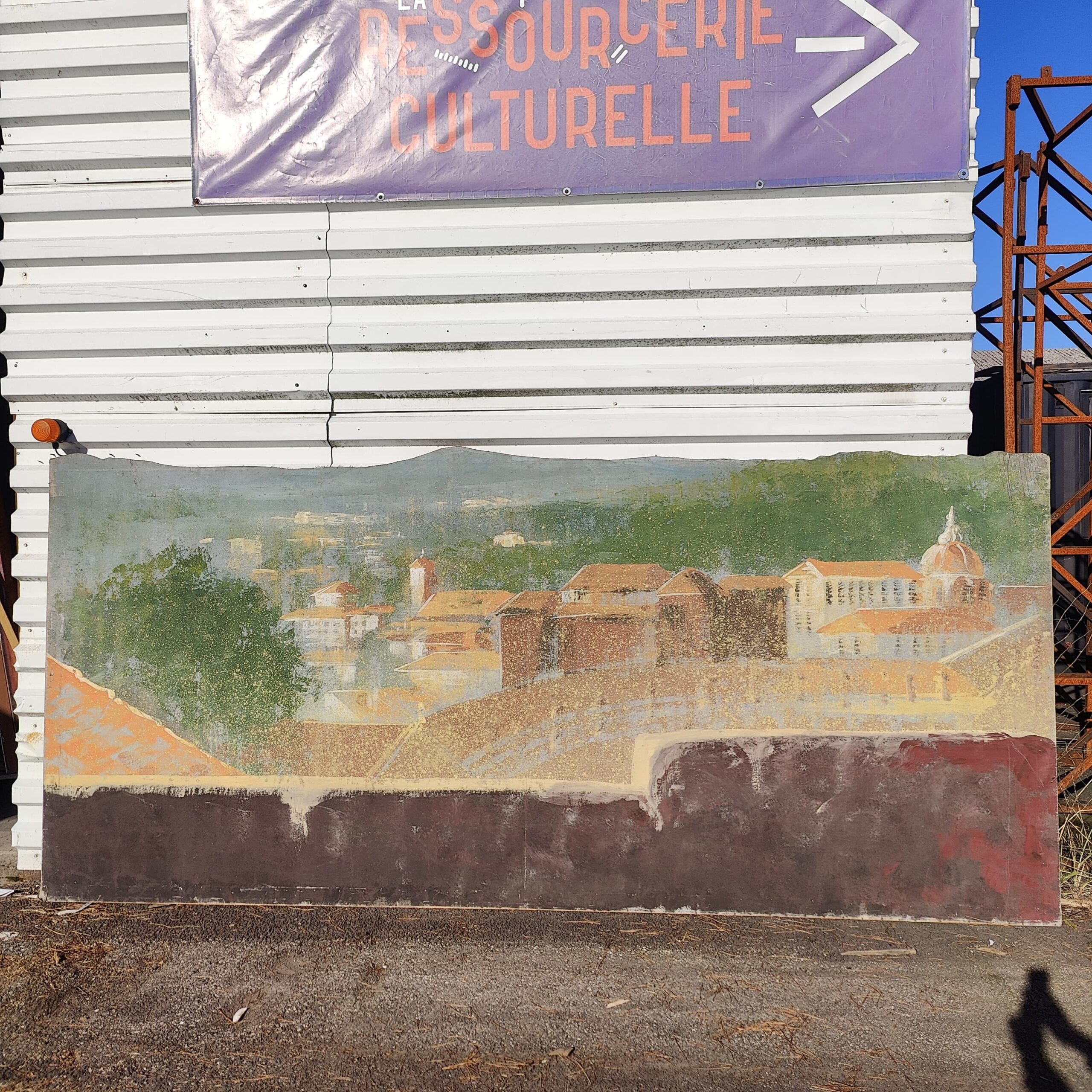 Fond de scène, fresque panoramique, décor de théâtre ou opéra, ambiance méridionale, installation immersive, habillage mural temporaire.