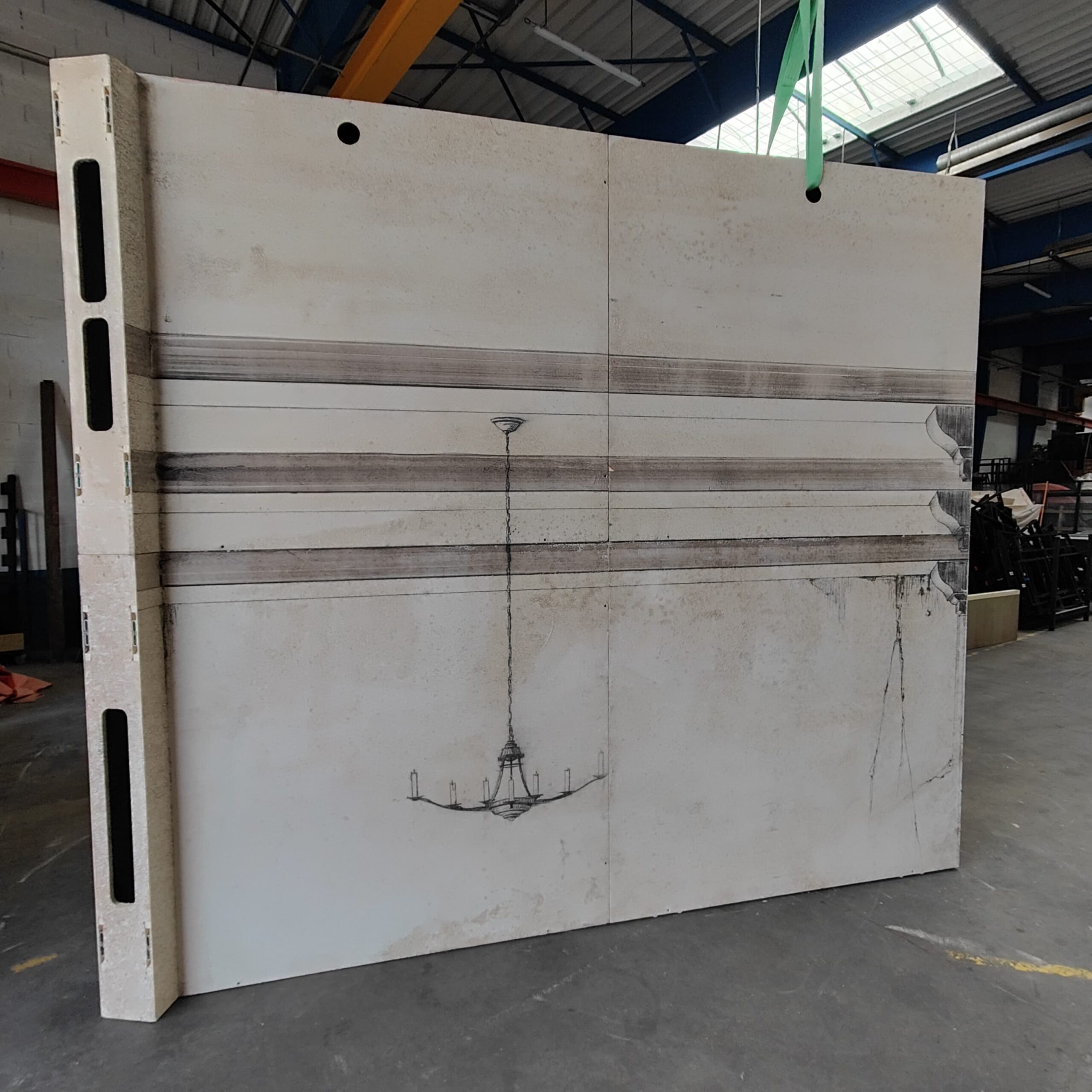 Chaque module présente des motifs peints (fenêtre, moulures, lustre…) pour un rendu architectural réaliste. (motif différent des 2 côtés)