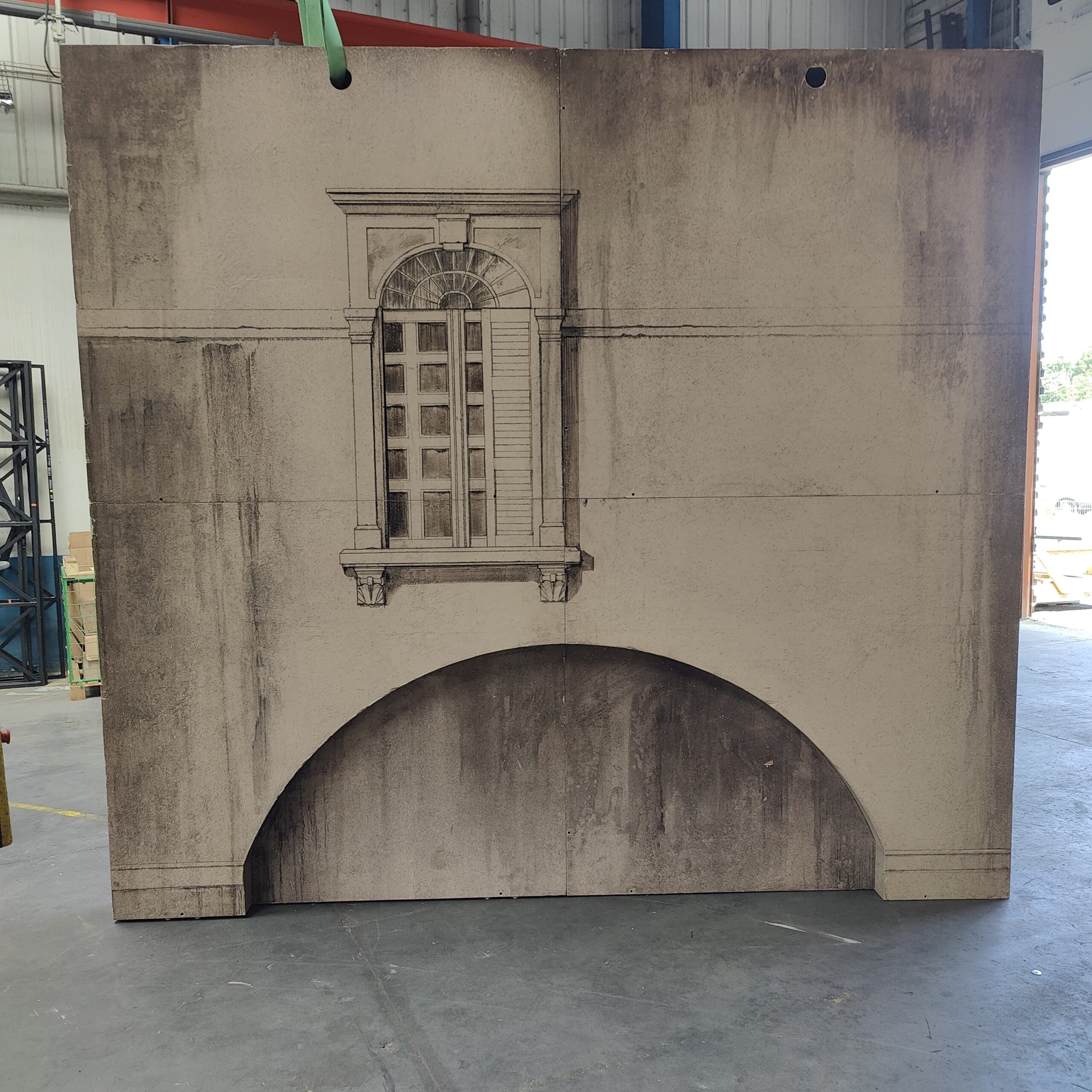 Décor scénique composé de 4 panneaux formant une façade intérieure ou extérieure en trompe-l’œil.