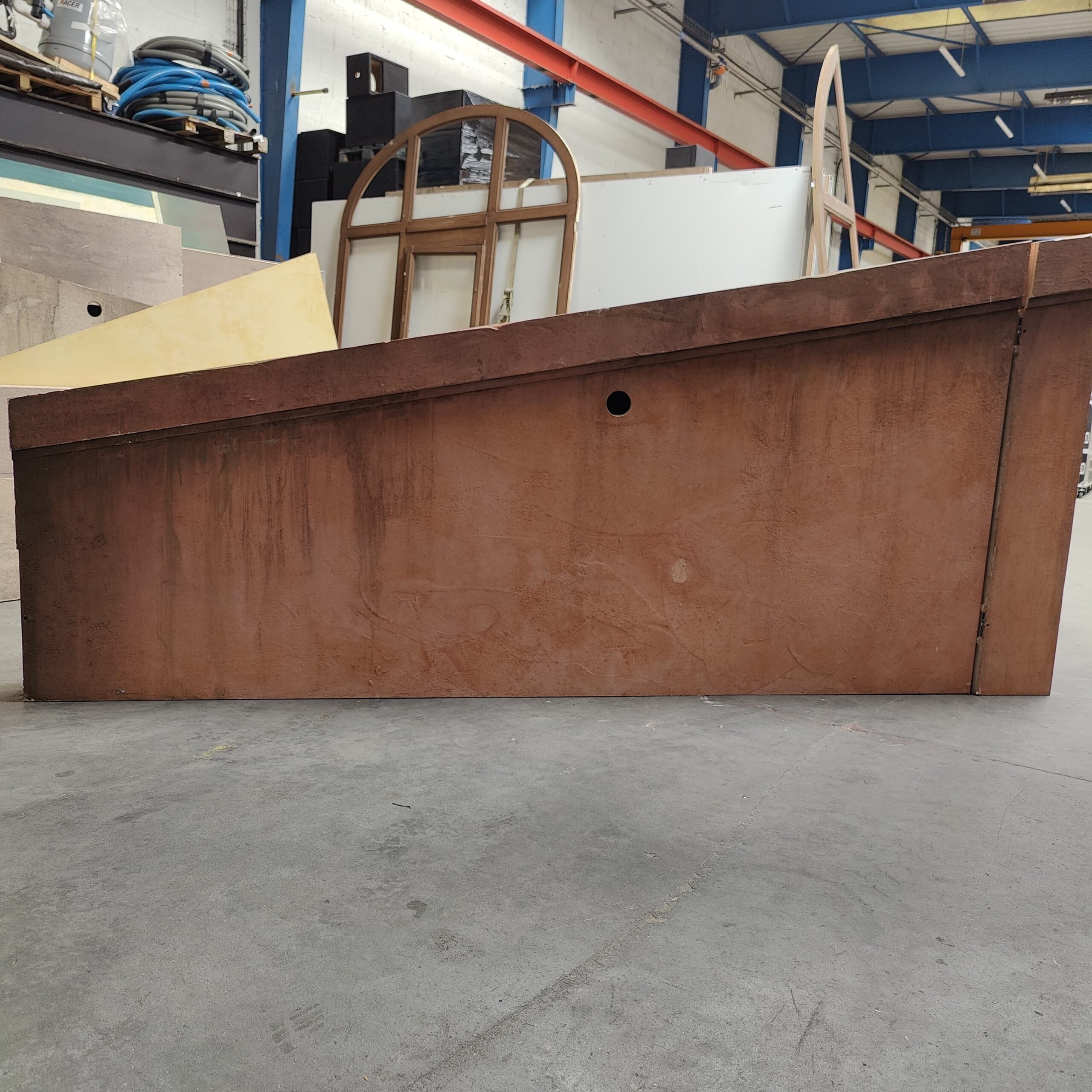 Lot de deux éléments scéniques en bois formant un ensemble de murets inclinés.