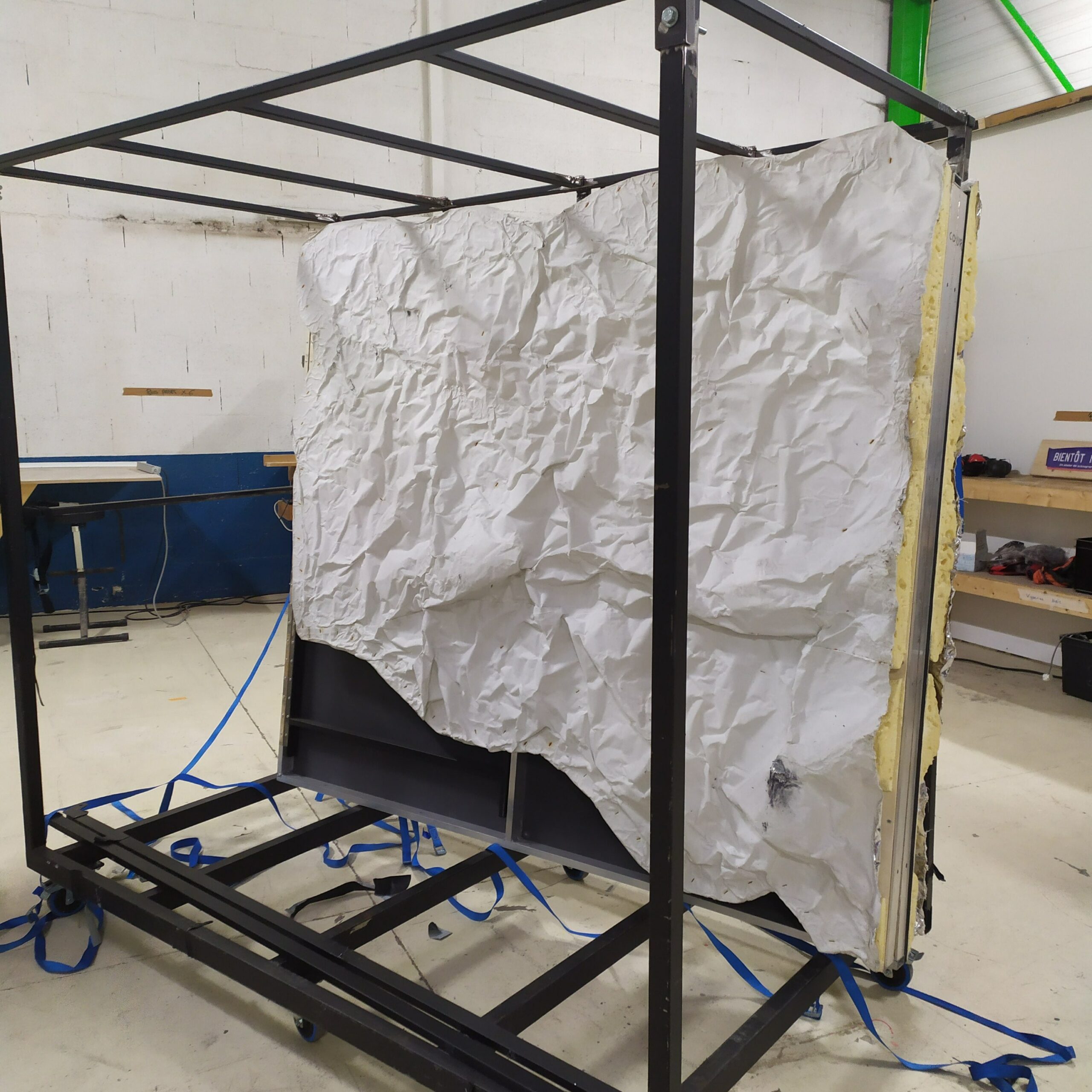 Vendu avec un chariot de transport à roulettes