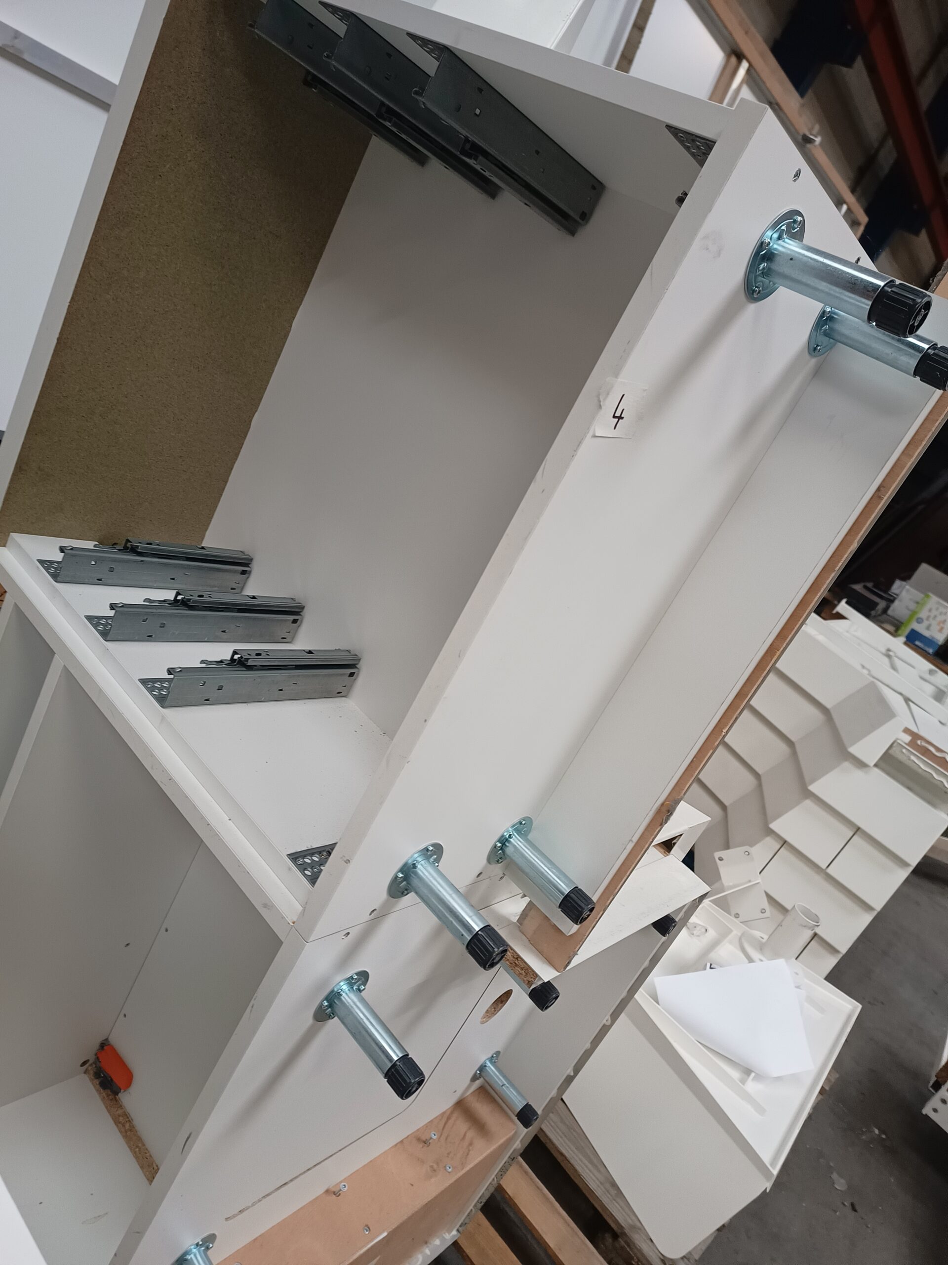 Modules n°1 et 2 : espace de rangement accessible à l’arrière (tablettes, tiroirs et compartiments)