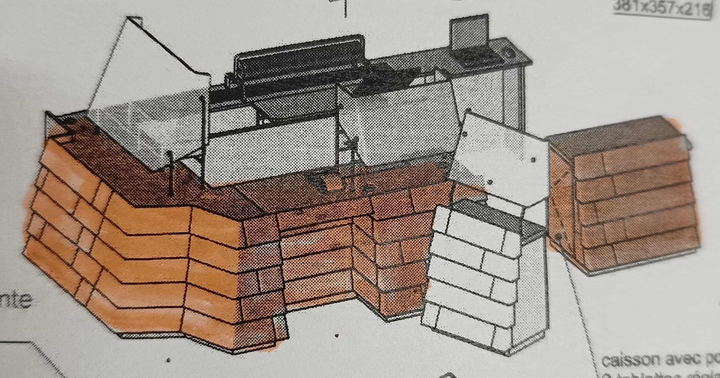 3 modules assemblables (correspondant aux parties coloriées en orange sur la 2e photo)