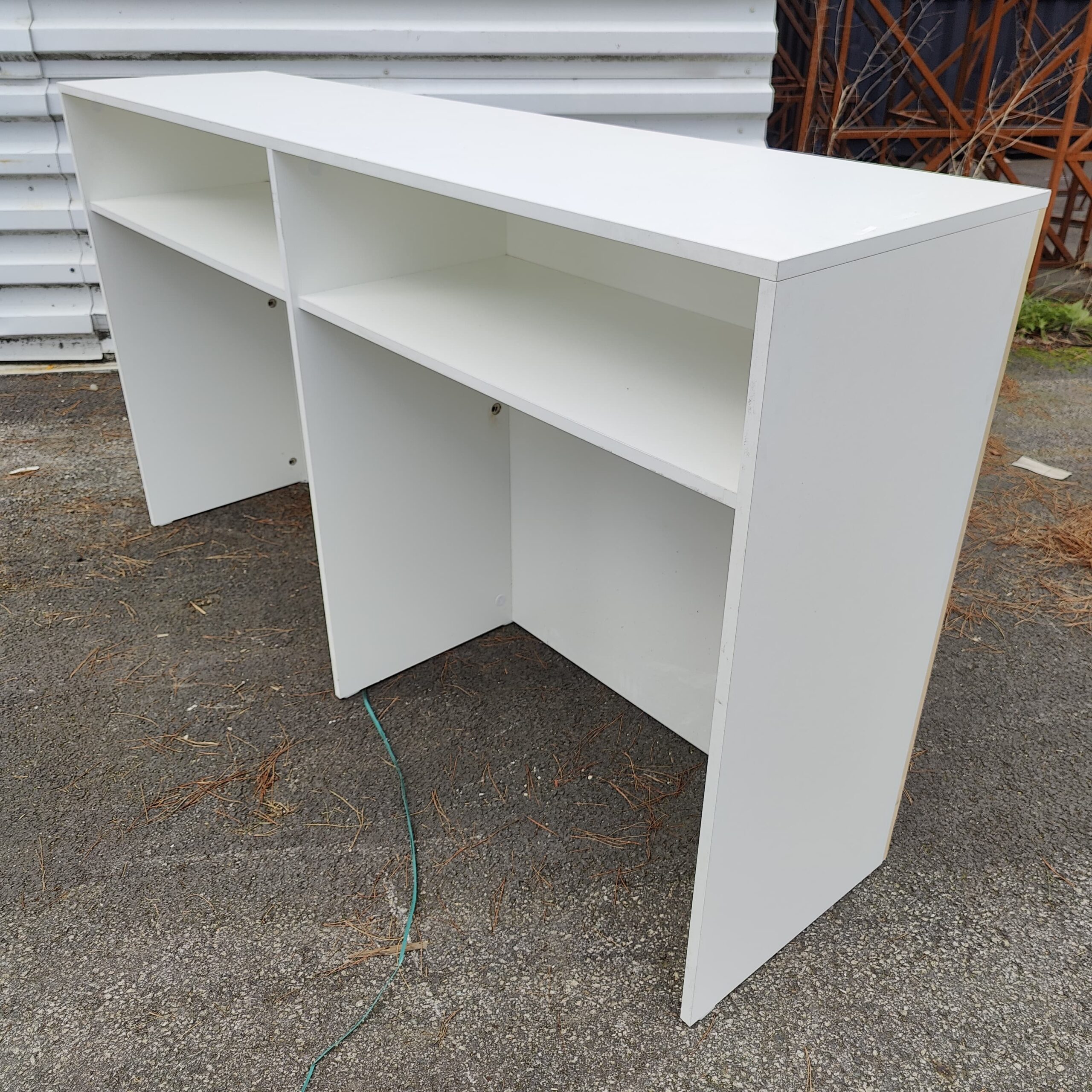 Comptoir en aggloméré stratifié blanc, conçu pour une utilisation en intérieur.