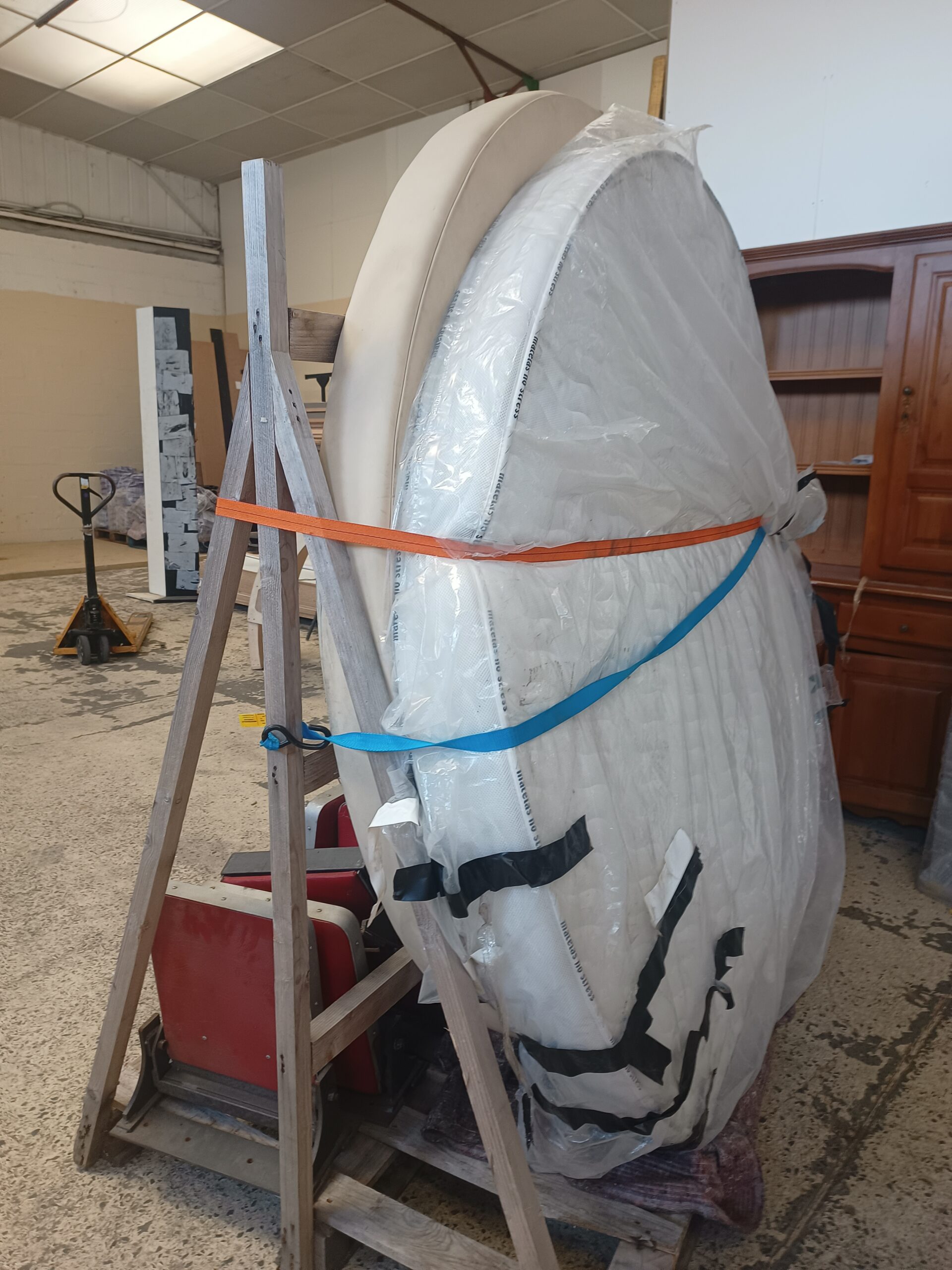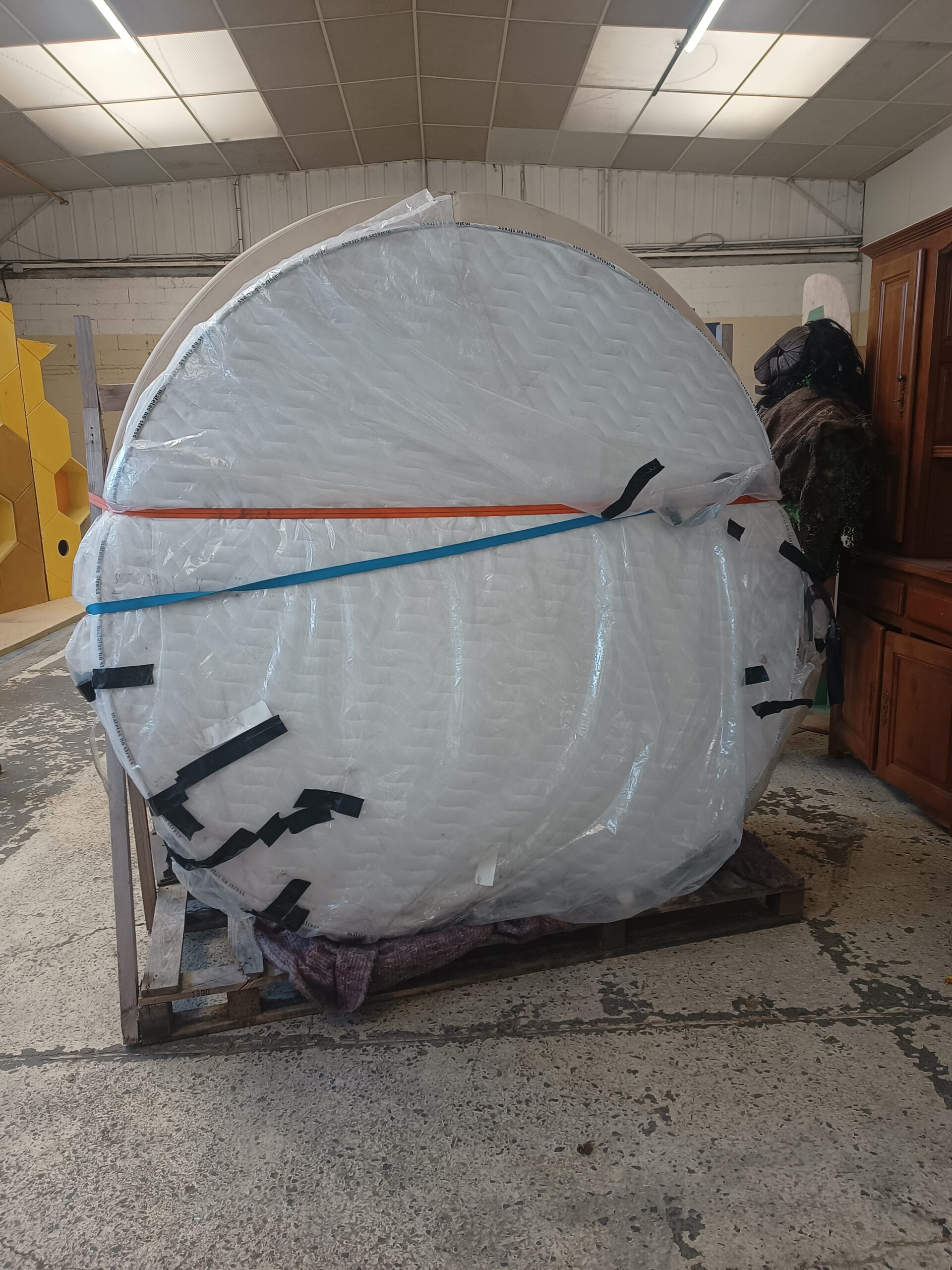 Lit circulaire, matelas unique avec sa forme ronde, base en deux morceaux a fixer ensemble